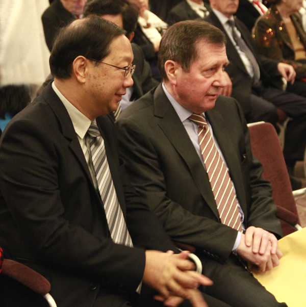 Auf dem Foto vereint: S.E. Shi Mingde, der Botschafter der V.R. China und der Ehrengast S.E. Wladimir Grinin, Außerordentlicher und Bevollmächtigter Botschafter der Russischen Föderation. |