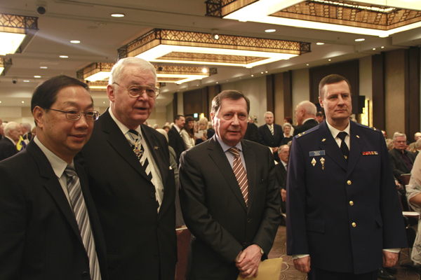 S.E. Shi Mingde, der Botschafter der V.R. China, Volker Tschapke, Präsident der Preußischen Gesellschaft, der Ehrengast S.E. Wladimir Grinin, Außerordentlicher und Bevollmächtigter Botschafter der Russischen Föderation und Mikhail Starov, Verteidigungsatache der Russischen Botschaft. |