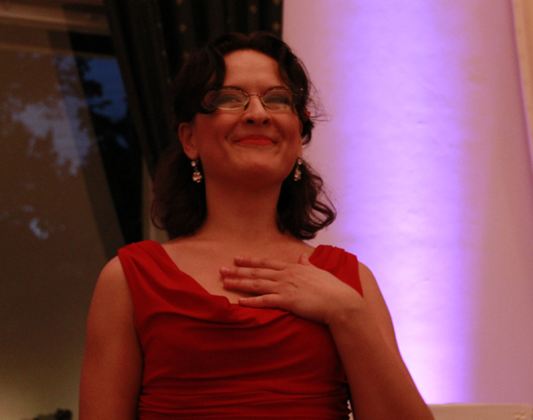 sagt den Auftritt von Marina Groffmann an, die von Sergej Rachmaninow