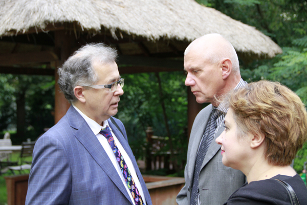 Herr Prof. Dr. Alexander Derevyanchenko mit seiner Frau Irina im Gespräch mit Dr. Ralph Richter aus Leipzig. | |