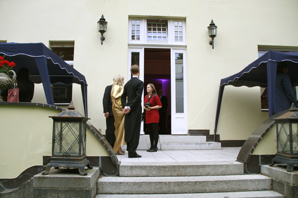 Gäste betreten das Löwenpalais durch die Gartenlounge. |