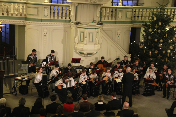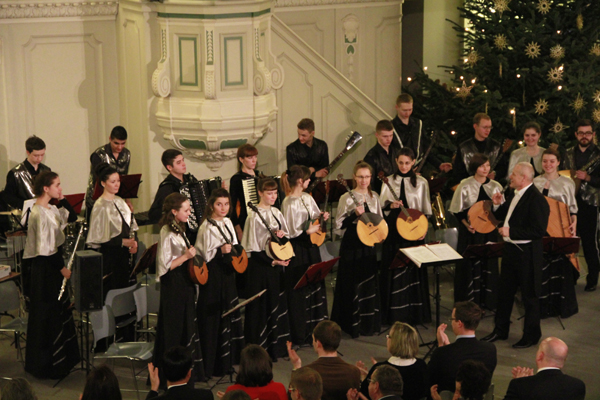 Das 7. Neujahrskonzert der Deutsch-Russischen Parlamentariergruppe des Deutschen Bundestages und der City Stiftung Berlin fand am 3.1.2015 im Französischen Dom am Gendarmenmarkt statt. Ein Konzertprogramm unter der Leitung von Prof. Alexander Afanasjev mit dem Orchester "Silver Strings". Das russische Orchester wird von der Fachwelt und Musikkritik wegen seiner Mischung aus typischen russischen und traditionell europäischen Instrumenten außerordentlich geschätzt. Als eines der ältesten Orchester Russlands wurde es 1918 in Kolpino, einem Vorort von St. Petersburg, gegründet. |