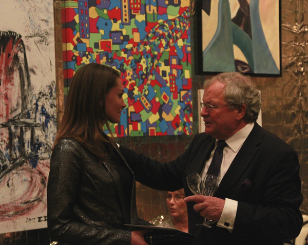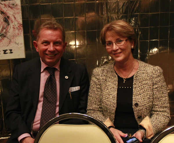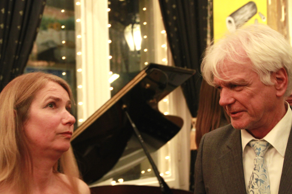 Graf Oleg Siemionow mit Nicole Lengenberg, die uns kurz zuvor mit ihren sprachmalerischen Fähigkeiten mit Ausschnitten aus den Werken von Leo Tolstoi erfreute und Gräfin Siemionow. | |