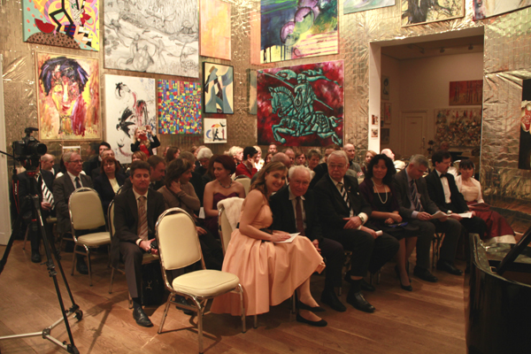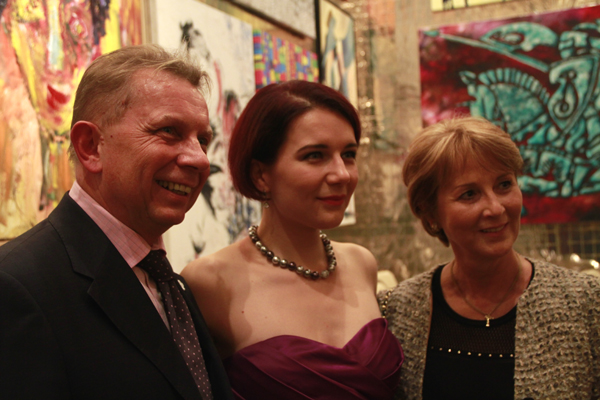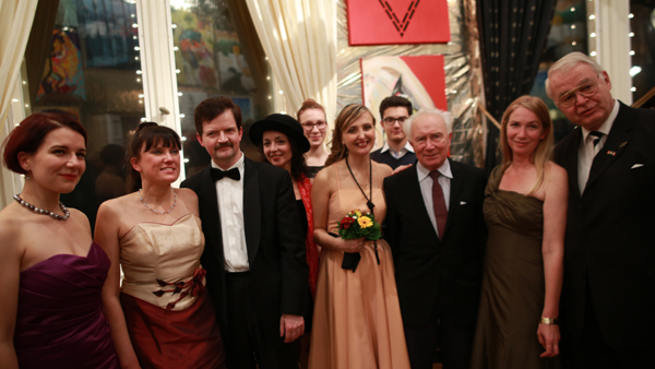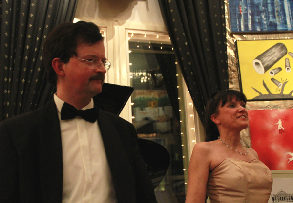 Graf Oleg Siemionow mit Olga Vilenskaia, die uns kurz zuvor mit ihrem Gesangsstück von Sergei Rachmaninow "Vokalise" erfreute und Gräfin Siemionow. | |